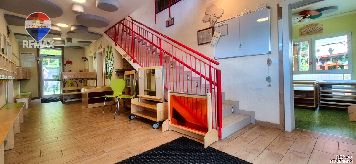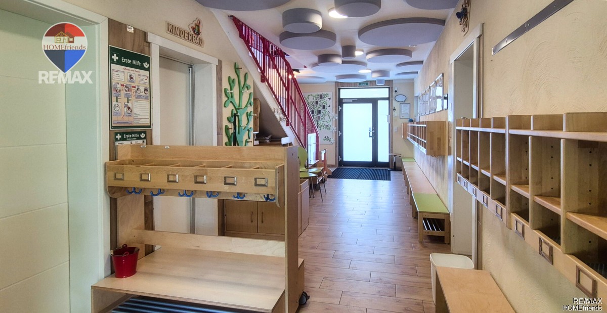Die Räumlichkeiten sind mit hochwertigen Einbauten ausgestattet – darunter großzügige Verglasungen, kindgerechte Sanitärbereiche und funktional gegliederte Zonen, die sich flexibel umgestalten lassen. Vorhandene Möbel, Stauraumlösungen und praktische Ausstattungselemente können übernommen oder auf Wunsch entfernt werden.